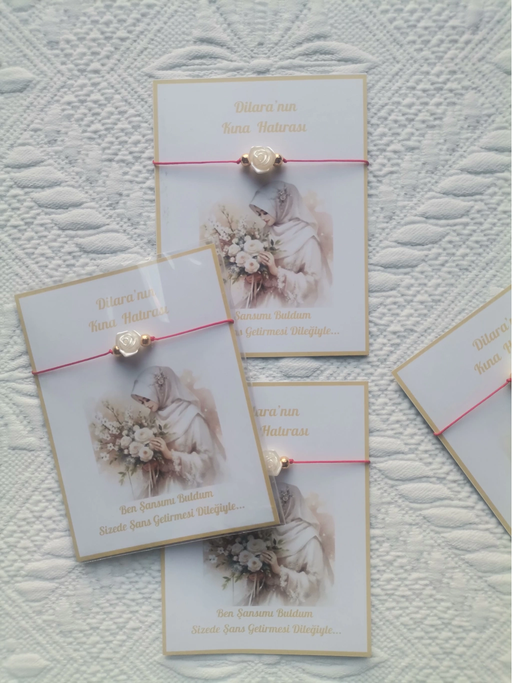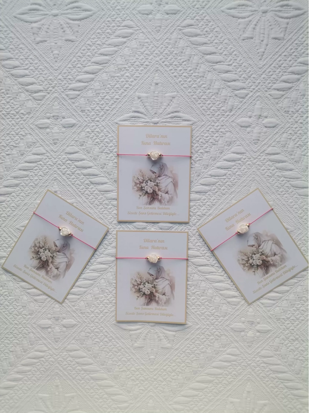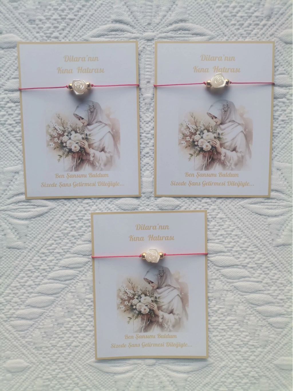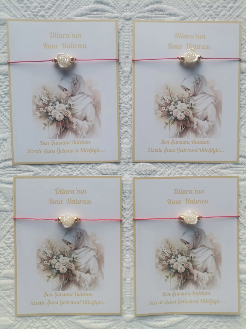 • 100 Adet Kişiye Özel Gül İnci Model Düğün Nikah Nişan Söz Kına Hatırası Dağıtmalık Hediyelik Bileklik