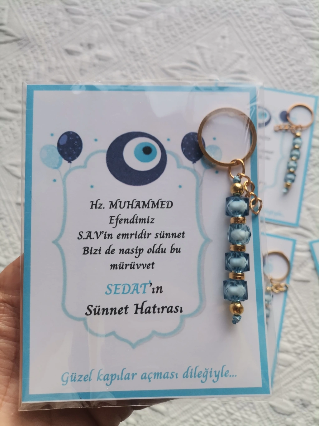 100 Adet Kişiye Özel Hz MUHAMMED S.A.V'in Emridir Yazılı Sünnet Hatırası Hediyelik Anahtarlık