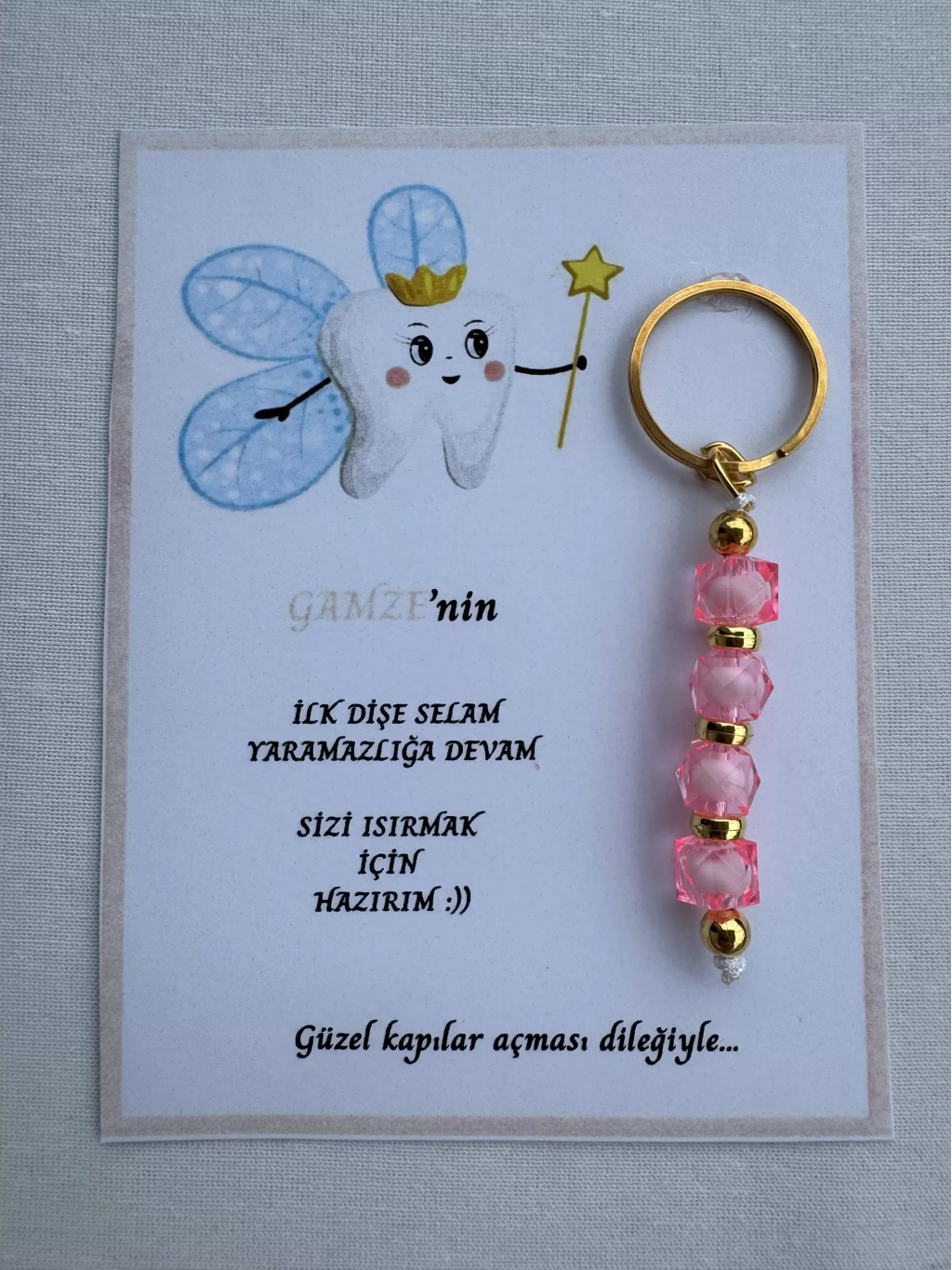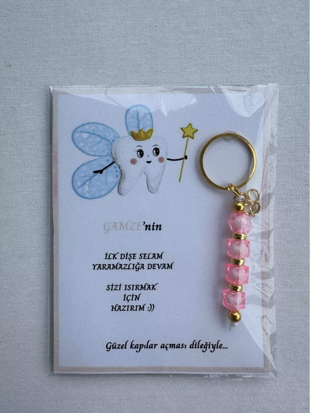 • 100 Adet Pembe Renk İsme Özel İlk Dişim Çıktı Diş Partisi Diş Buğdayı Hatırası Hediyelik Anahtarlık