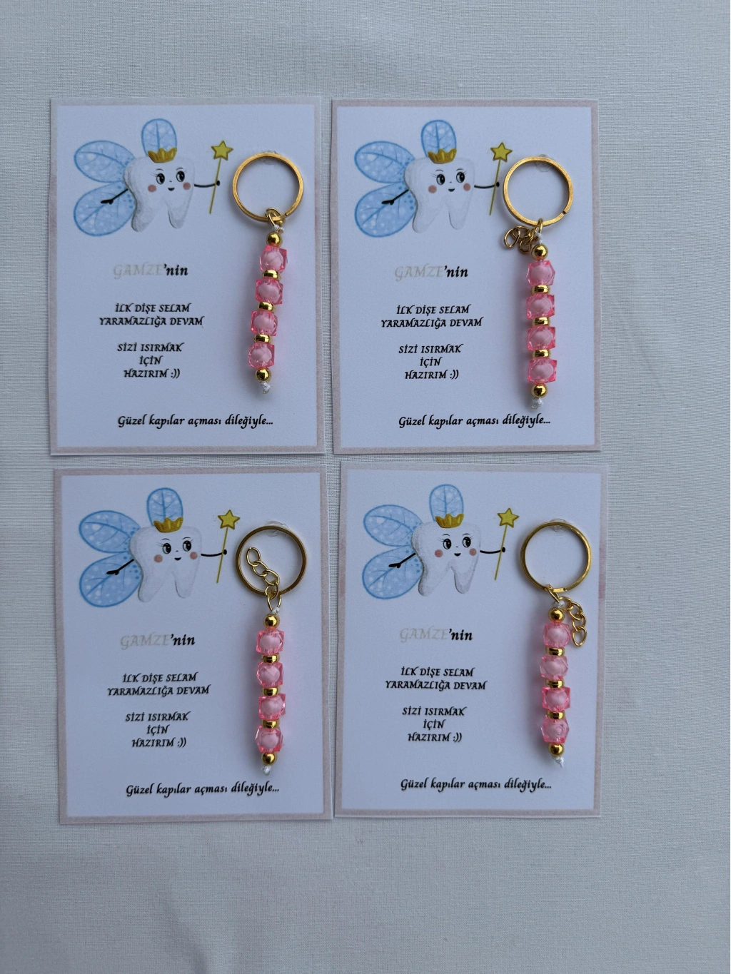 100 Adet Pembe Renk İsme Özel İlk Dişim Çıktı Diş Partisi Diş Buğdayı Hatırası Hediyelik Anahtarlık