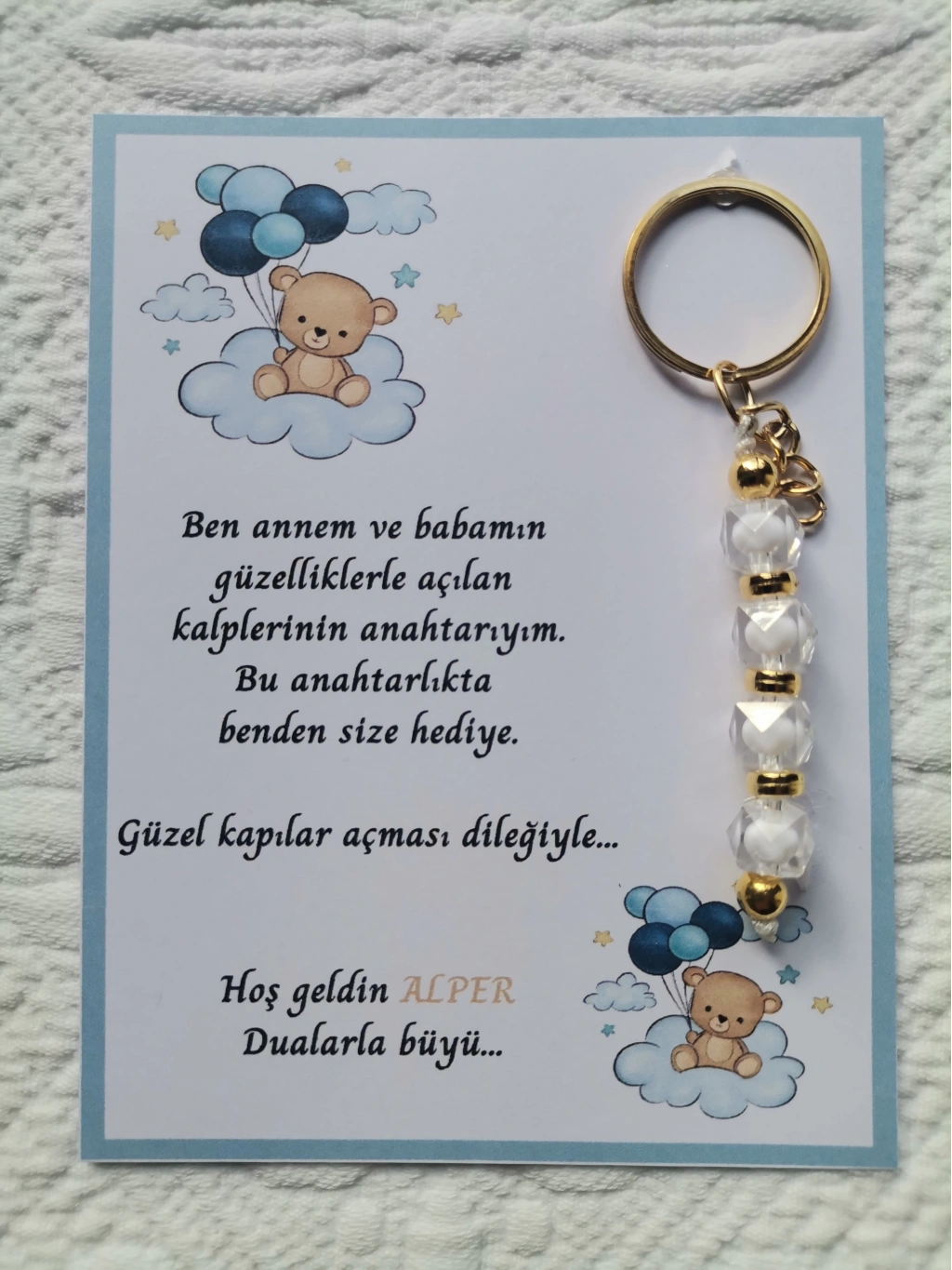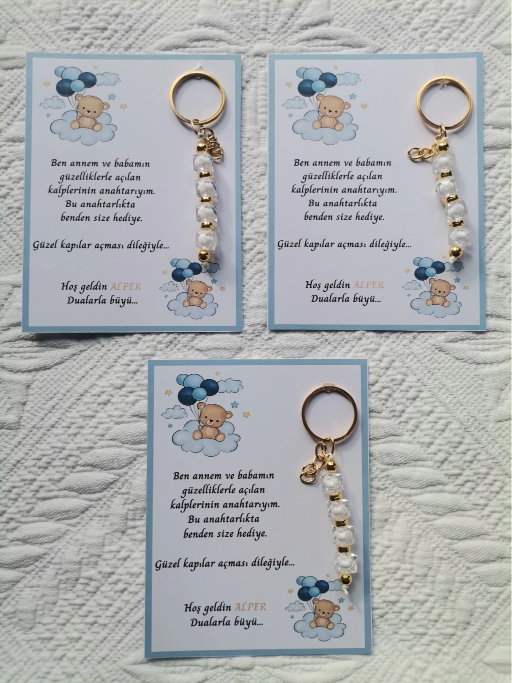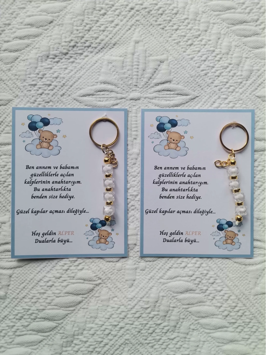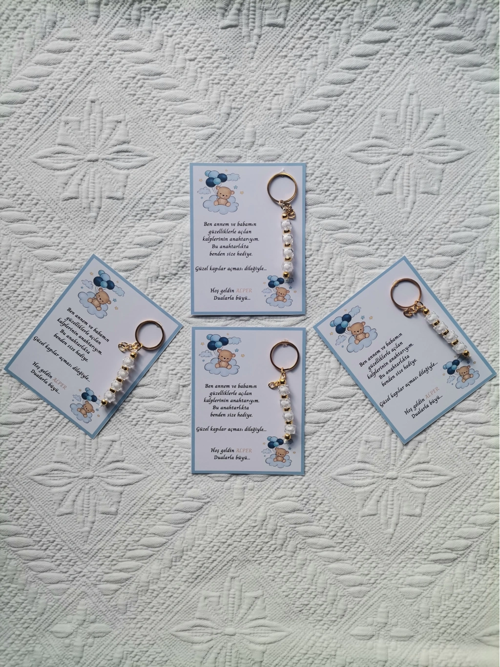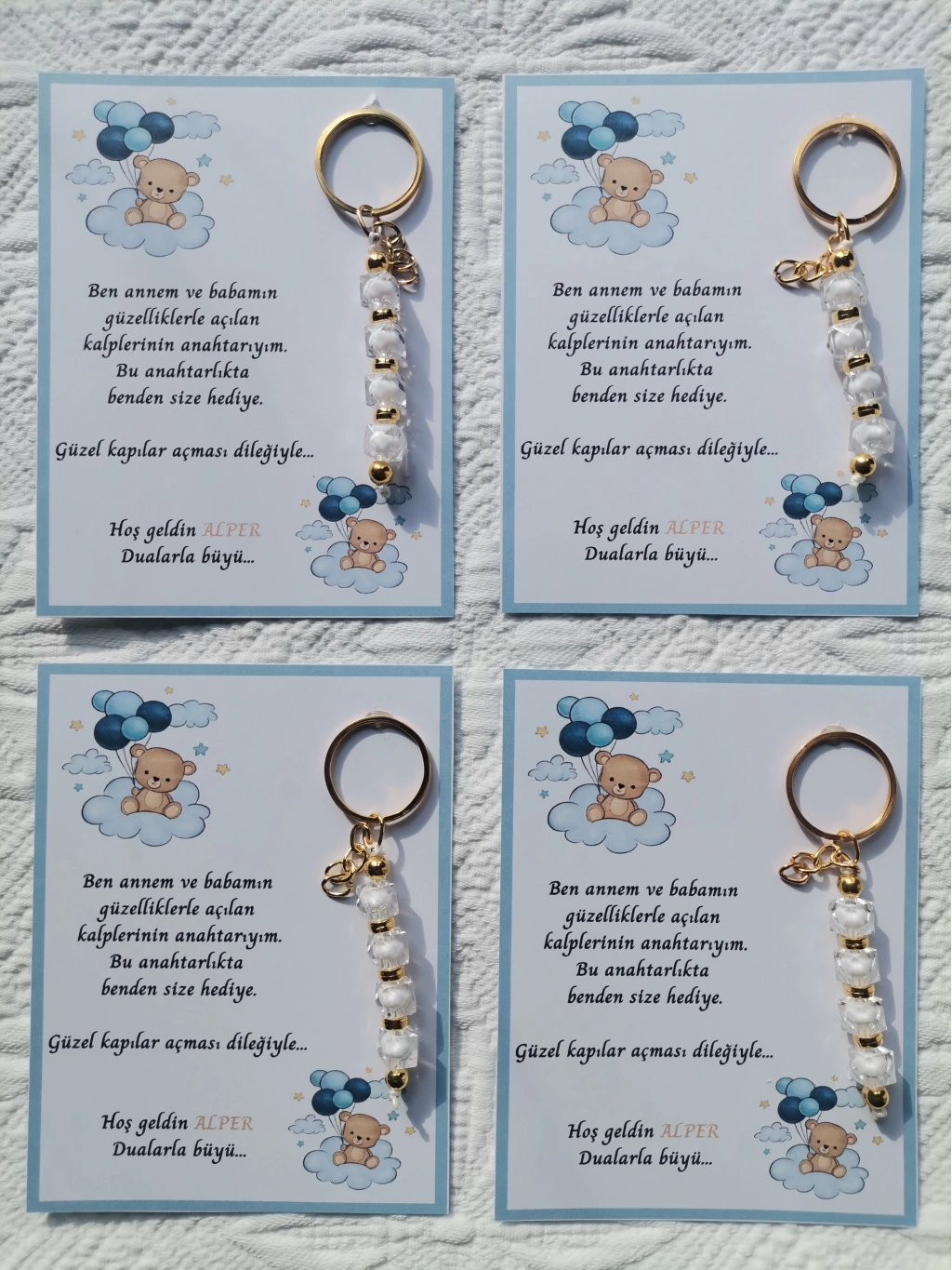 24 adet BEYAZ anahtarlık, dualarla büyülü mesajlarla süslenmiş, hastane ve yeni doğan bebeklerinize özel olarak tasarlanmıştır.