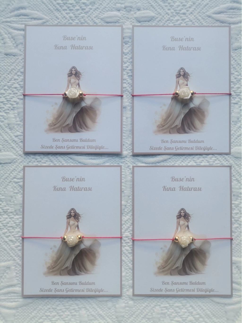 - Kişiye özel olarak hazırlanan bu bileklikler, özel günlerinizi daha da anlamlı kılar.