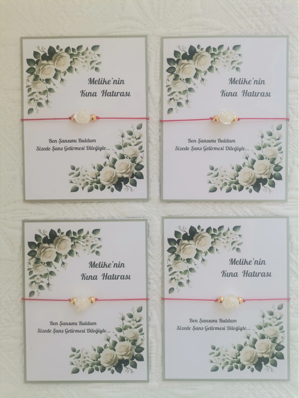 24 Adet Kişiye Özel Gül İnci Model Düğün Nikah Nişan Söz Kına Hatırası Dağıtmalık Hediyelik Bileklik