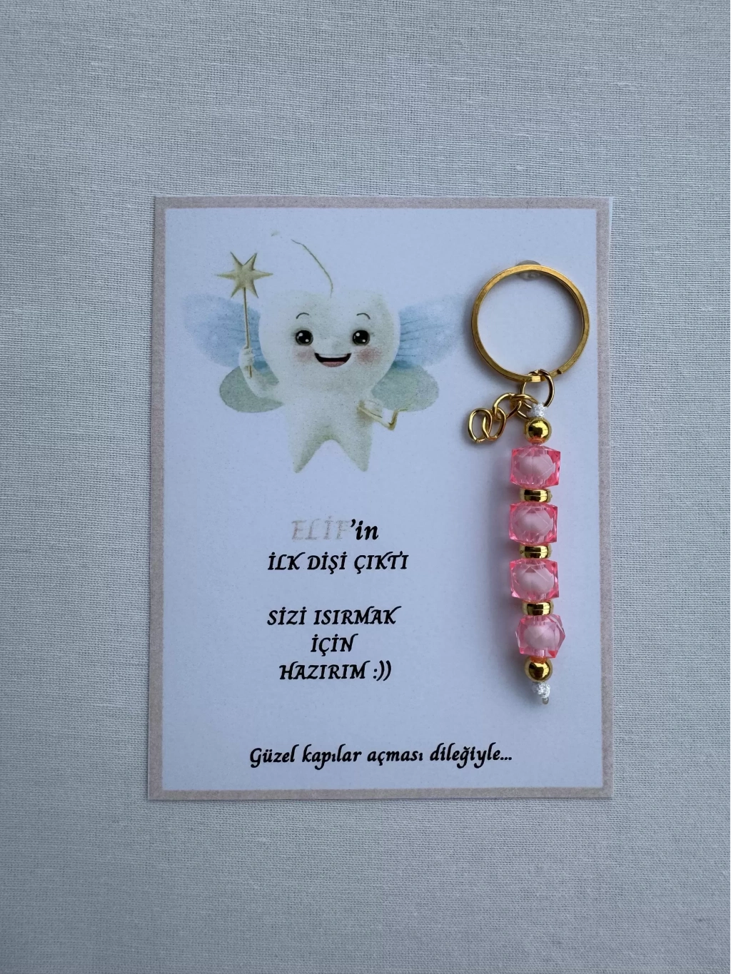 • 48 Adet Pembe Renk İsme Özel İlk Dişim Çıktı Diş Partisi Diş Buğdayı Hatırası Hediyelik Anahtarlık