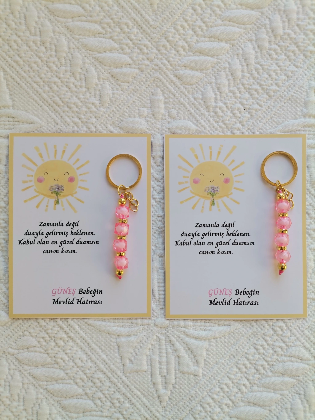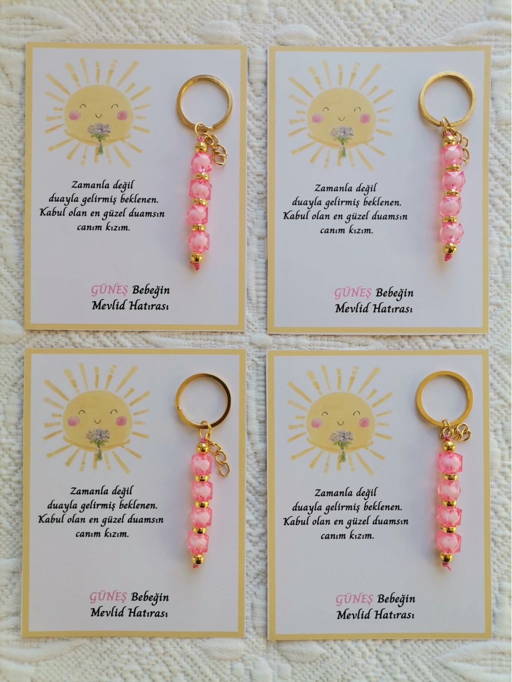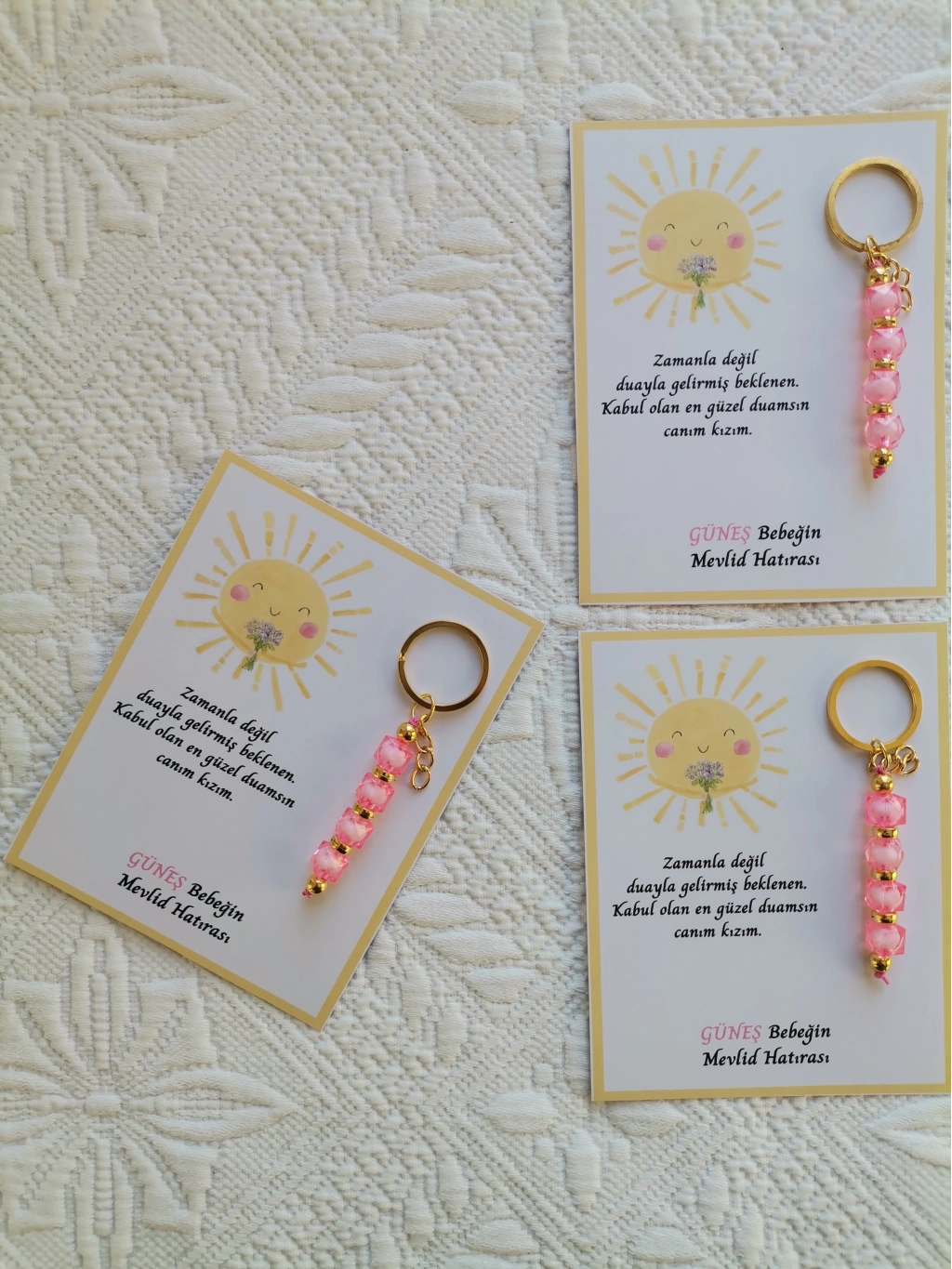 48 Adet Özel Tasarım Güneş ve Pembe Anahtarlık Hastane Yeni Doğan 40 Mevlidi Dağıtmalık Hediyelik