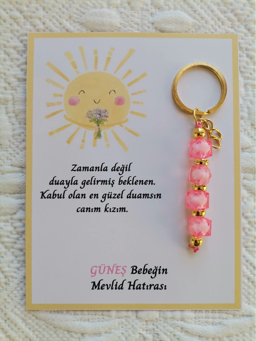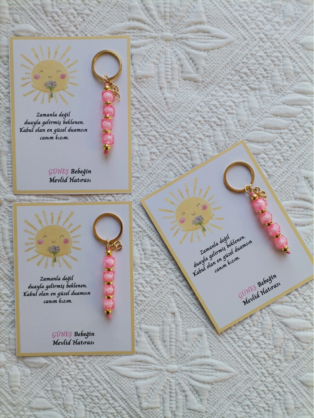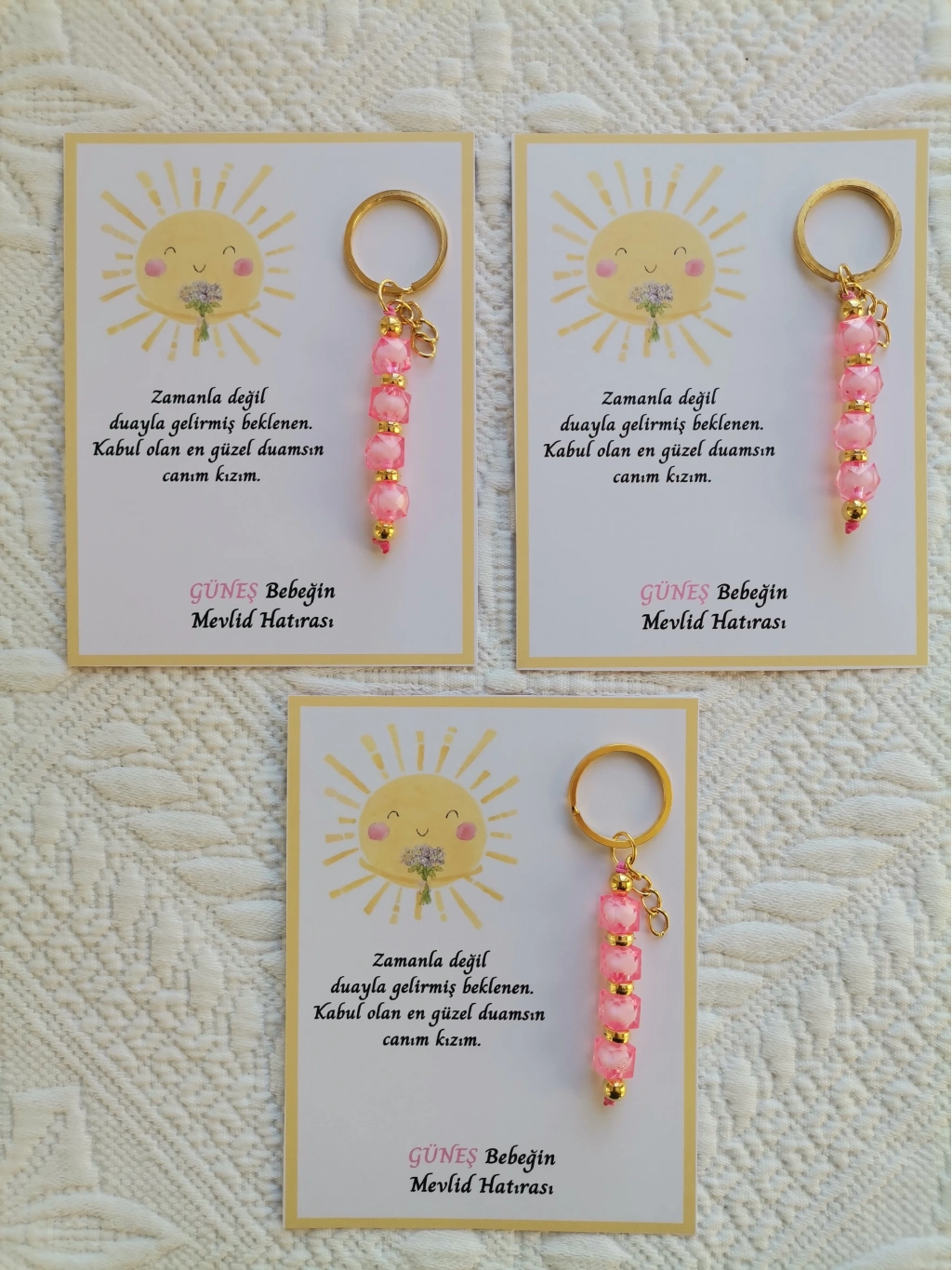 48 Adet Özel Tasarım Güneş ve Pembe Anahtarlık Hastane Yeni Doğan 40 Mevlidi Dağıtmalık Hediyelik