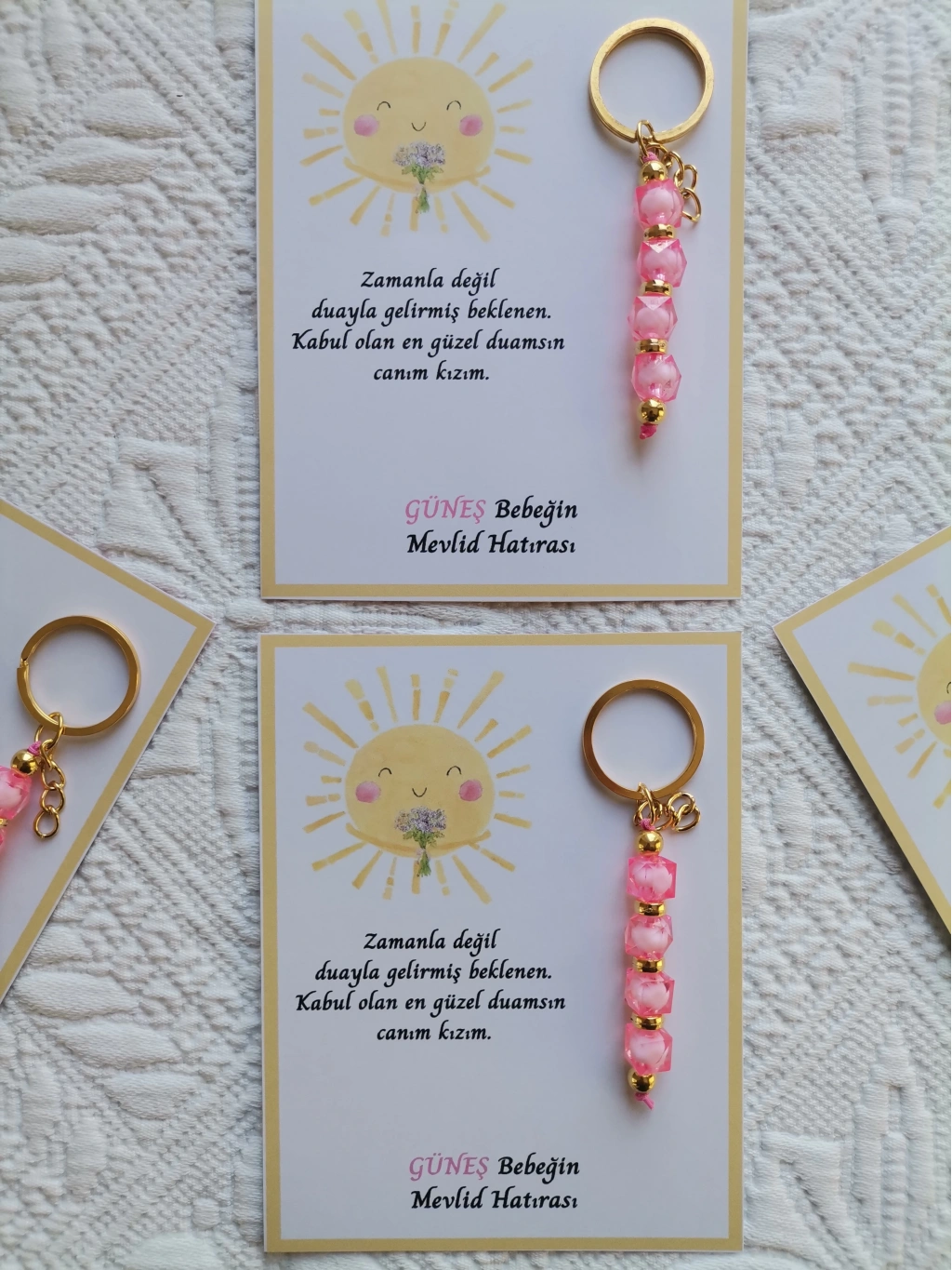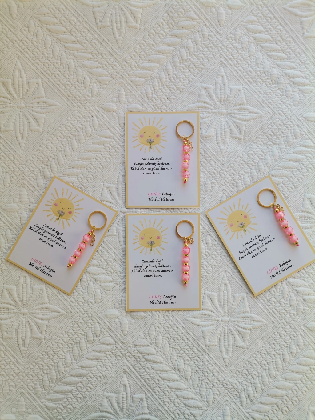 • 48 Adet Özel Tasarım Güneş ve Pembe Anahtarlık Hastane Yeni Doğan 40 Mevlidi Dağıtmalık Hediyelik