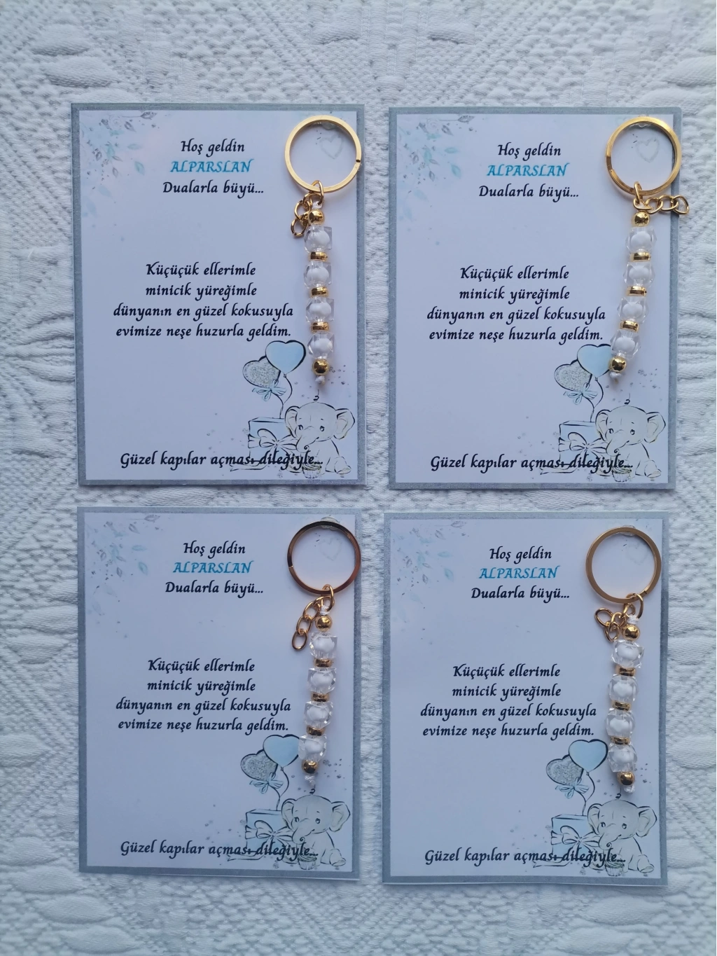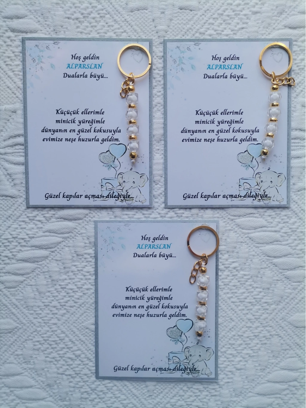 • 52 Adet İsme Özel Tasarım Beyaz Anahtarlık Hastane Yeni Doğan 40 Mevlidi Dağıtmalık Hediyelik