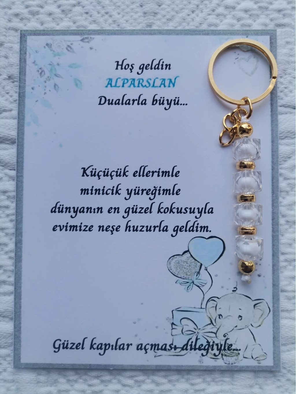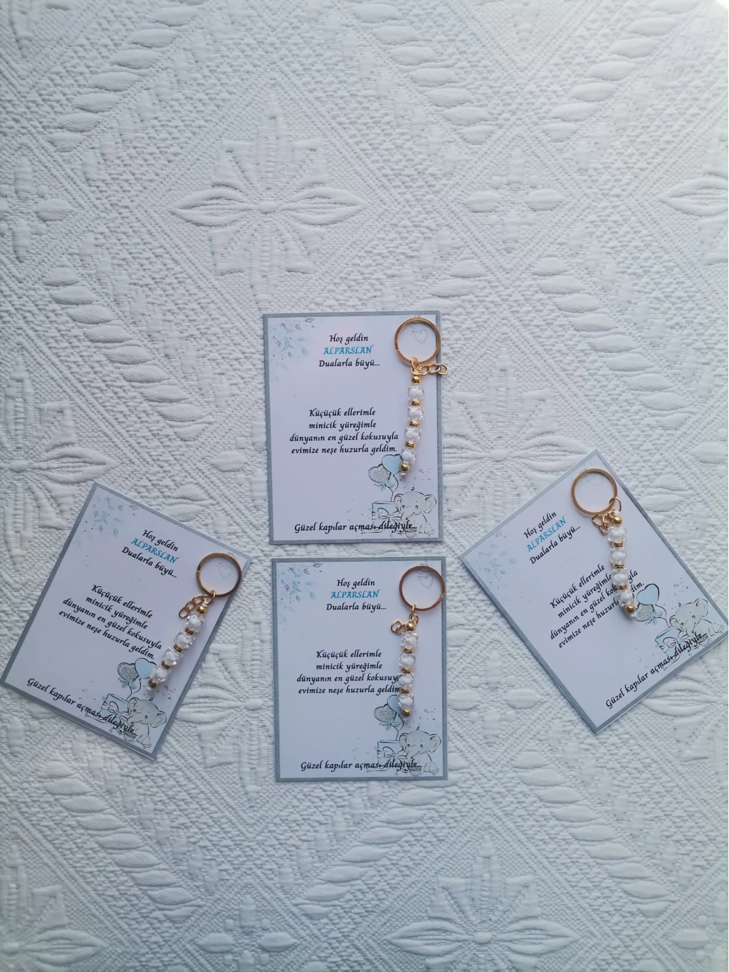 52 adet BEYAZ anahtarlık, dualarla büyülü mesajlarla süslenmiş, hastane ve yeni doğan bebeklerinize özel olarak tasarlanmıştır.