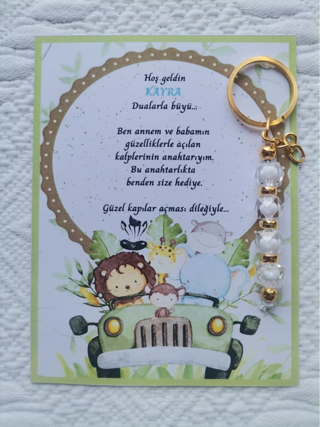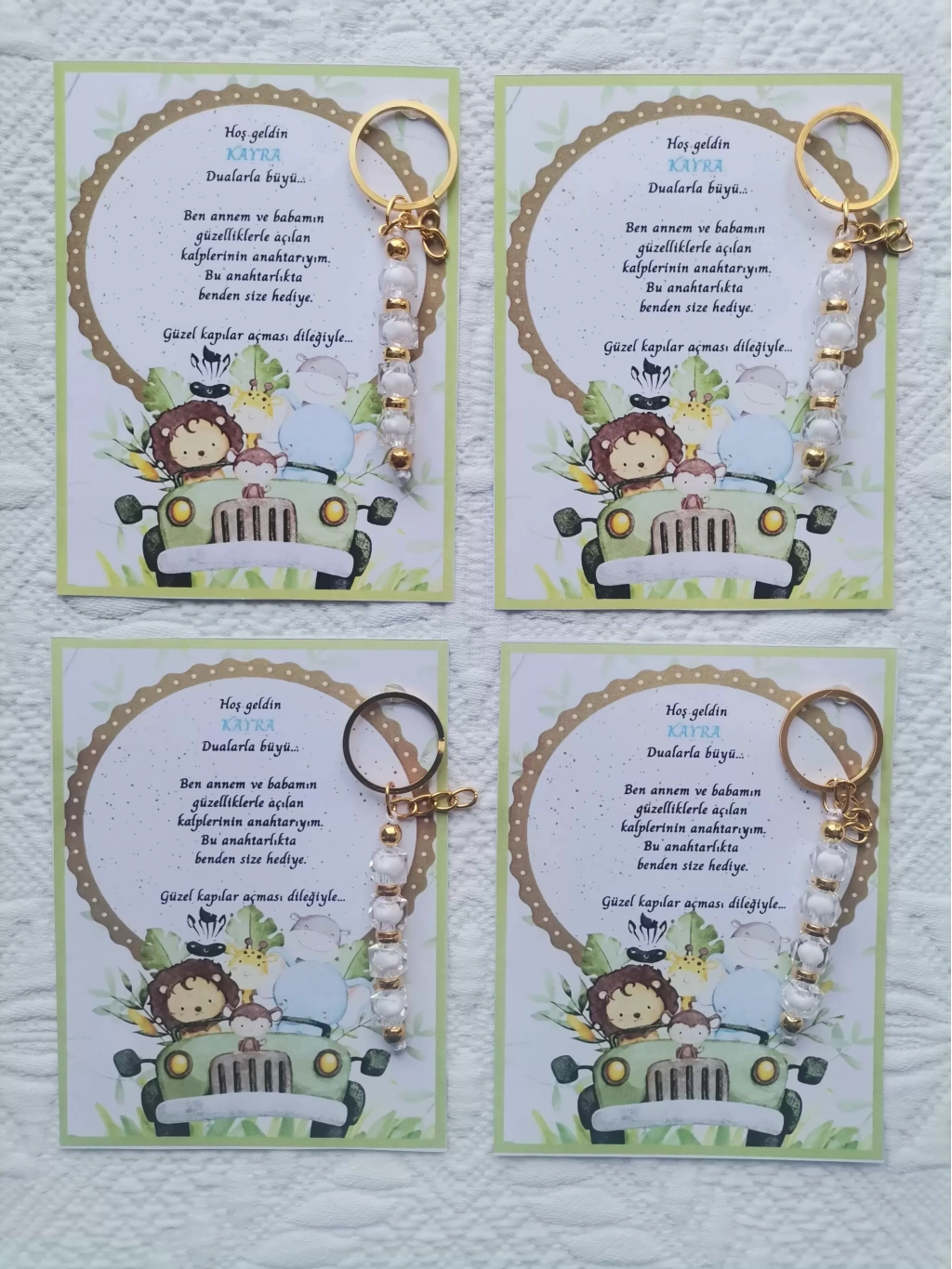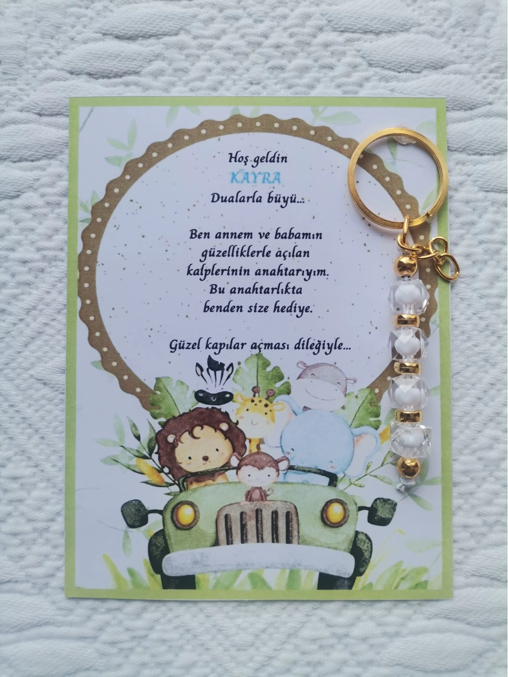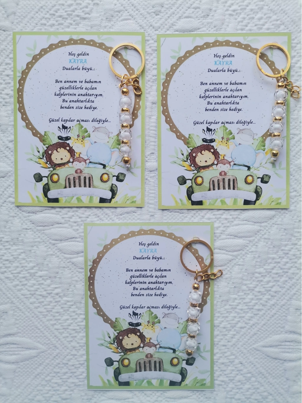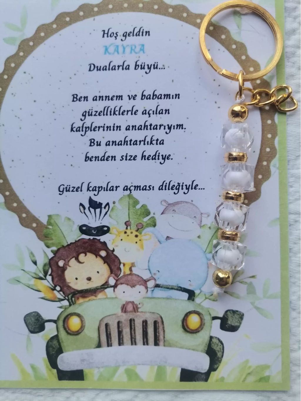 52 adet BEYAZ anahtarlık, dualarla büyülü mesajlarla süslenmiş, hastane ve yeni doğan bebeklerinize özel olarak tasarlanmıştır.