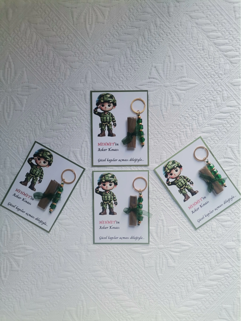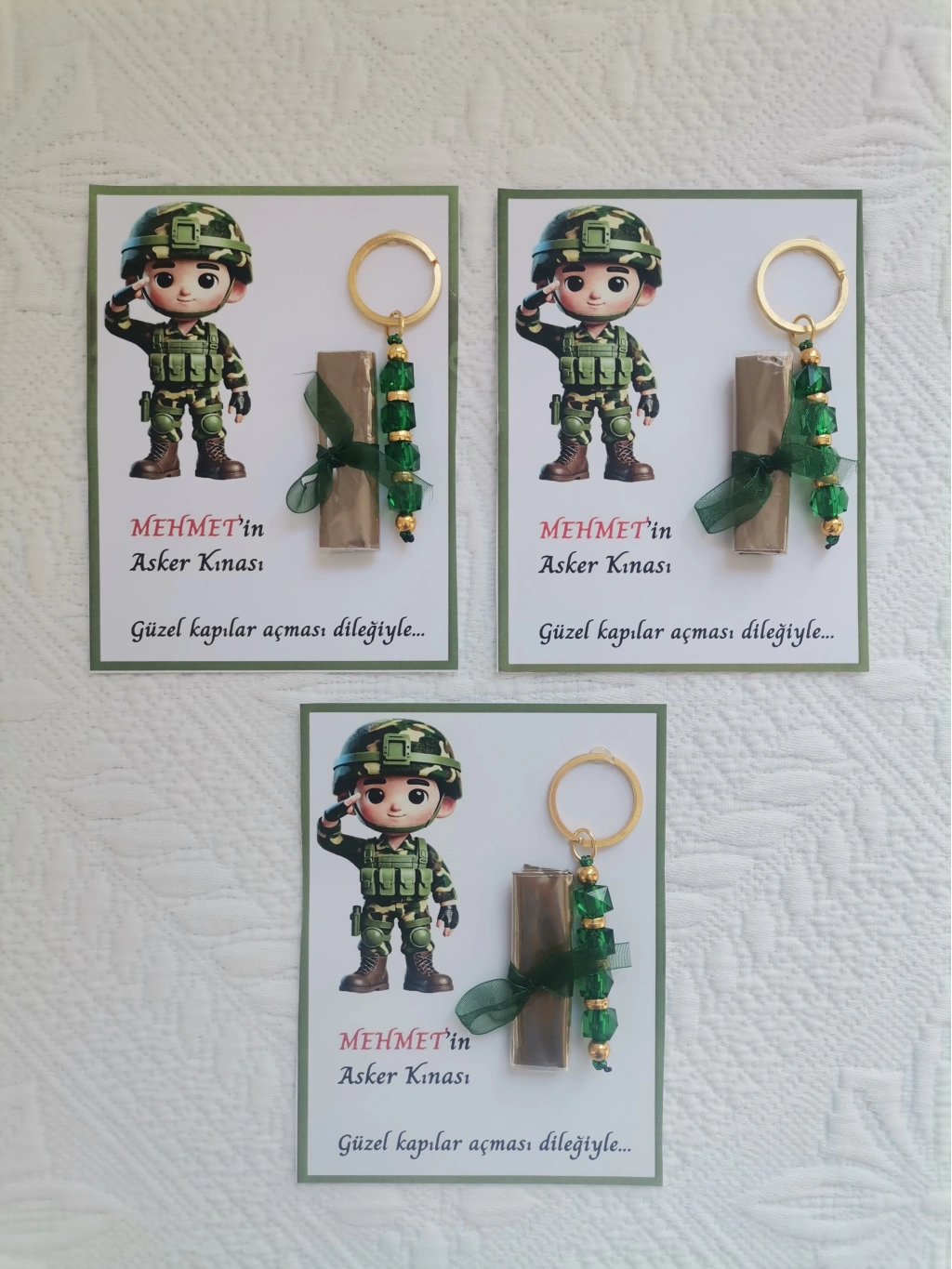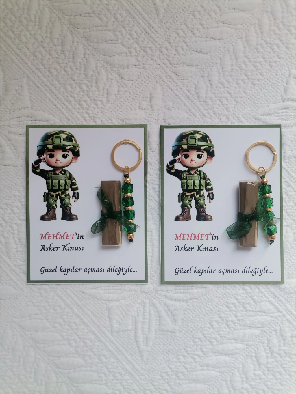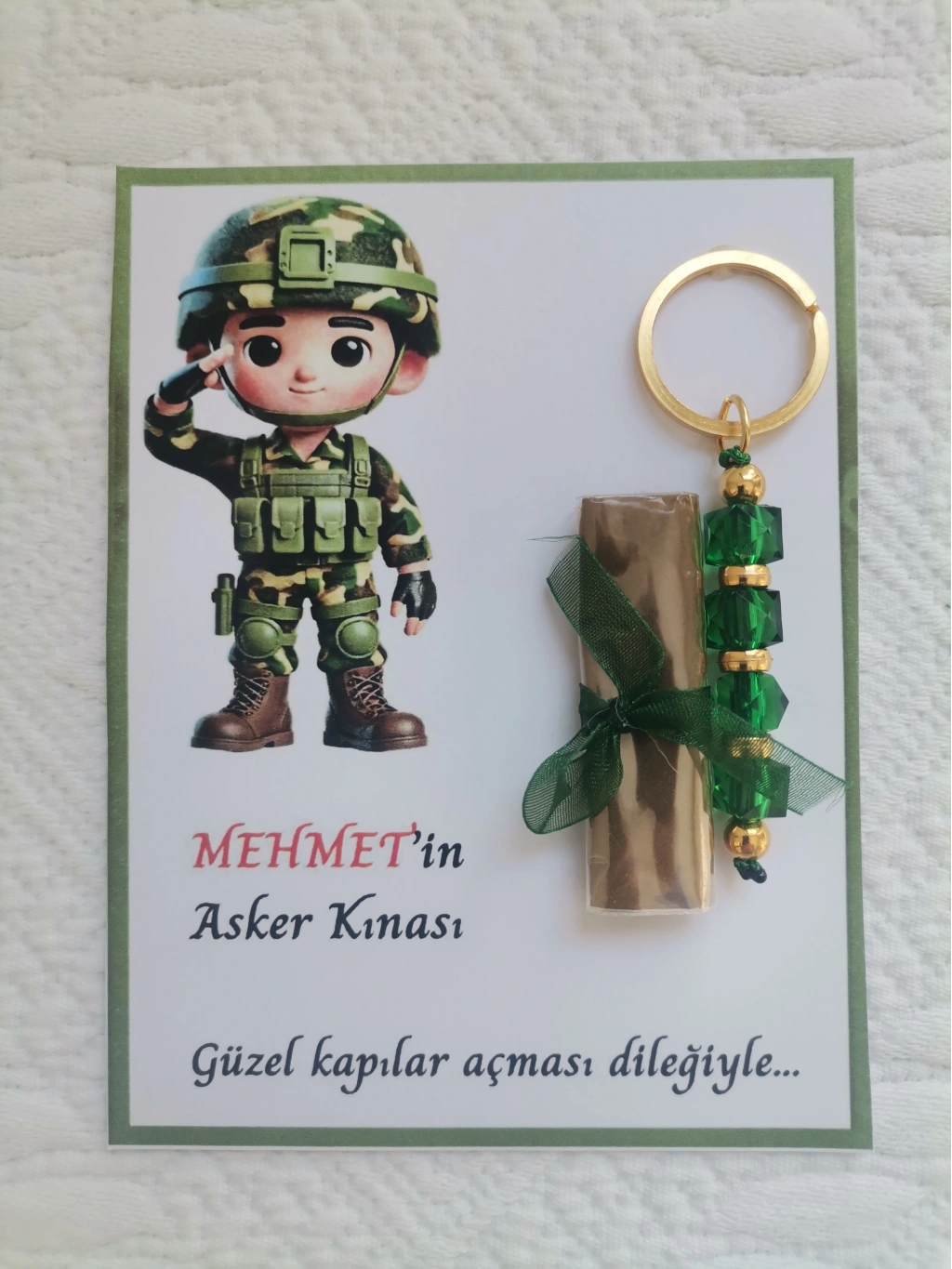 - Kişiye özel olarak hazırlanan bu anahtarlıklar, asker kına hatırası olarak dağıtılabilir ve özel gününüzde sevdiklerinize unutulmaz bir hediye sunar. -