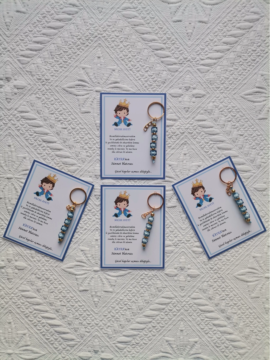 • 64 Adet Kişiye Özel Nazar Ayeti Sünnet Hatırası Mavi Anahtarlık Dağıtmalık Hediyelik