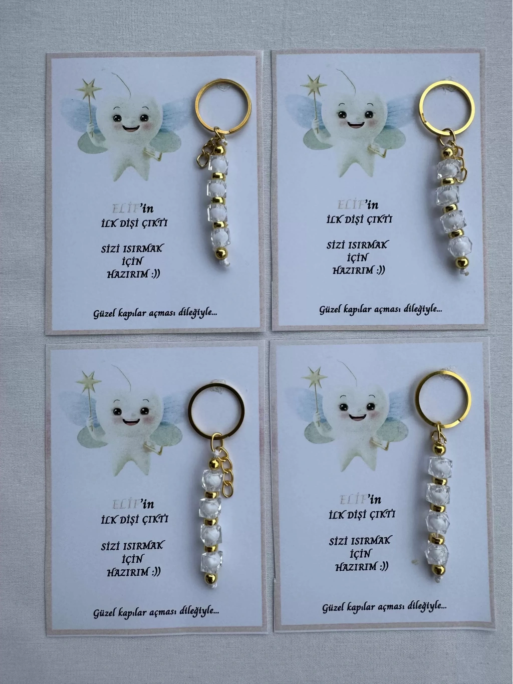 72 Adet Beyaz Renk İsme Özel İlk Dişim Çıktı Diş Partisi Diş Buğdayı Hatırası Hediyelik Anahtarlık
