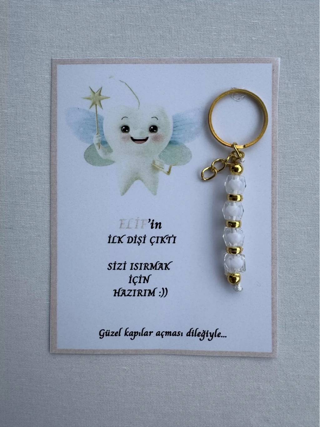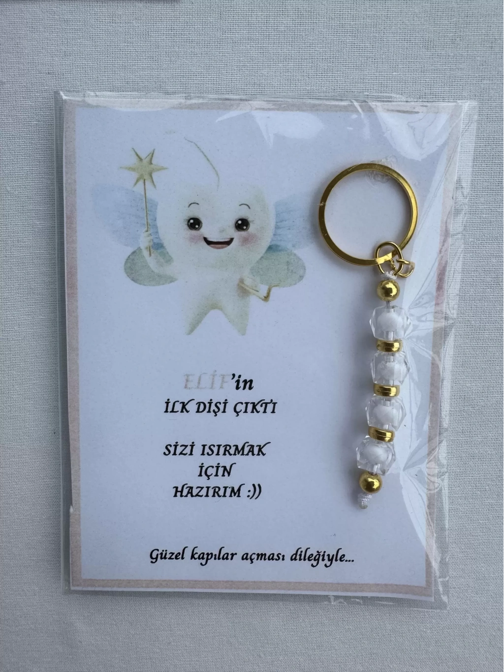 • 72 Adet Beyaz Renk İsme Özel İlk Dişim Çıktı Diş Partisi Diş Buğdayı Hatırası Hediyelik Anahtarlık