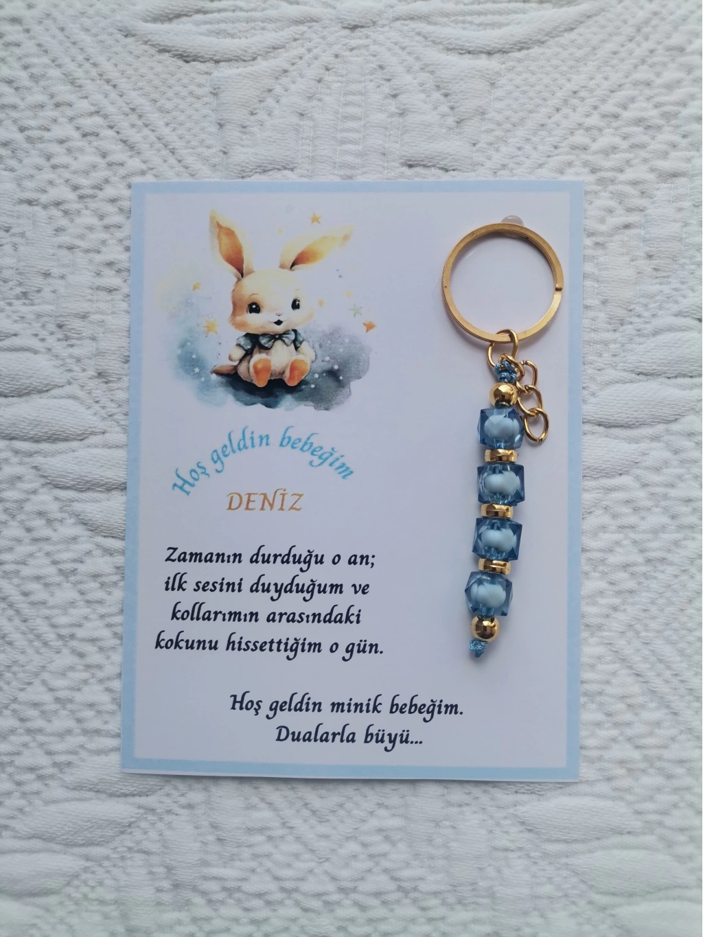 • 72 Adet İsme Özel Tasarım Mavi Anahtarlık Hastane Yeni Doğan 40 Mevlidi Dağıtmalık Hediyelik
