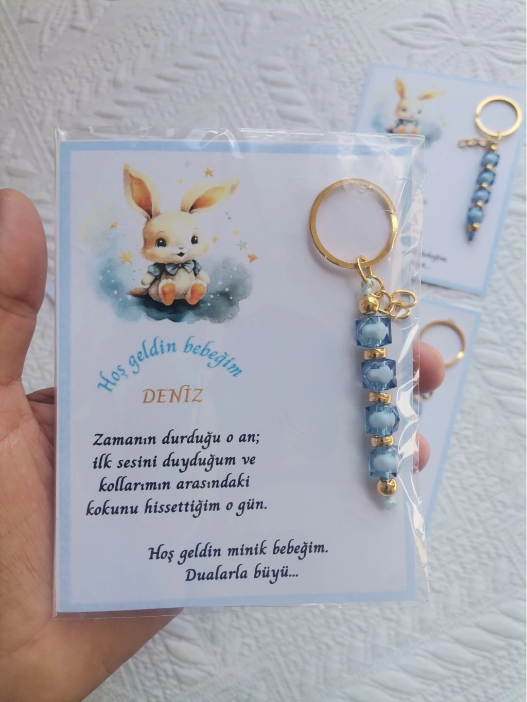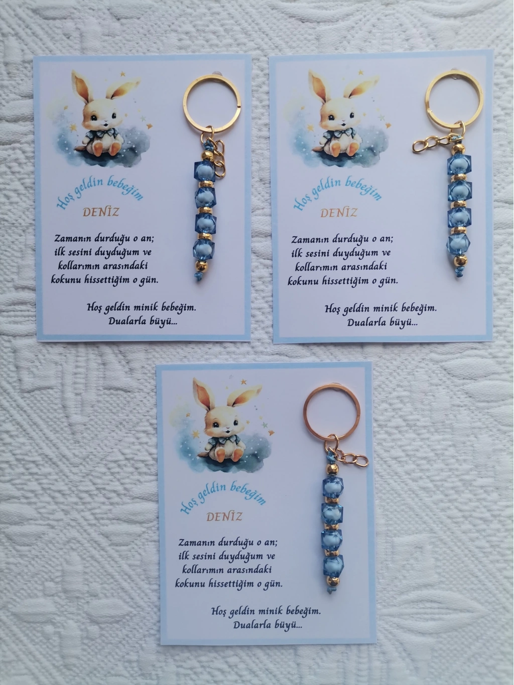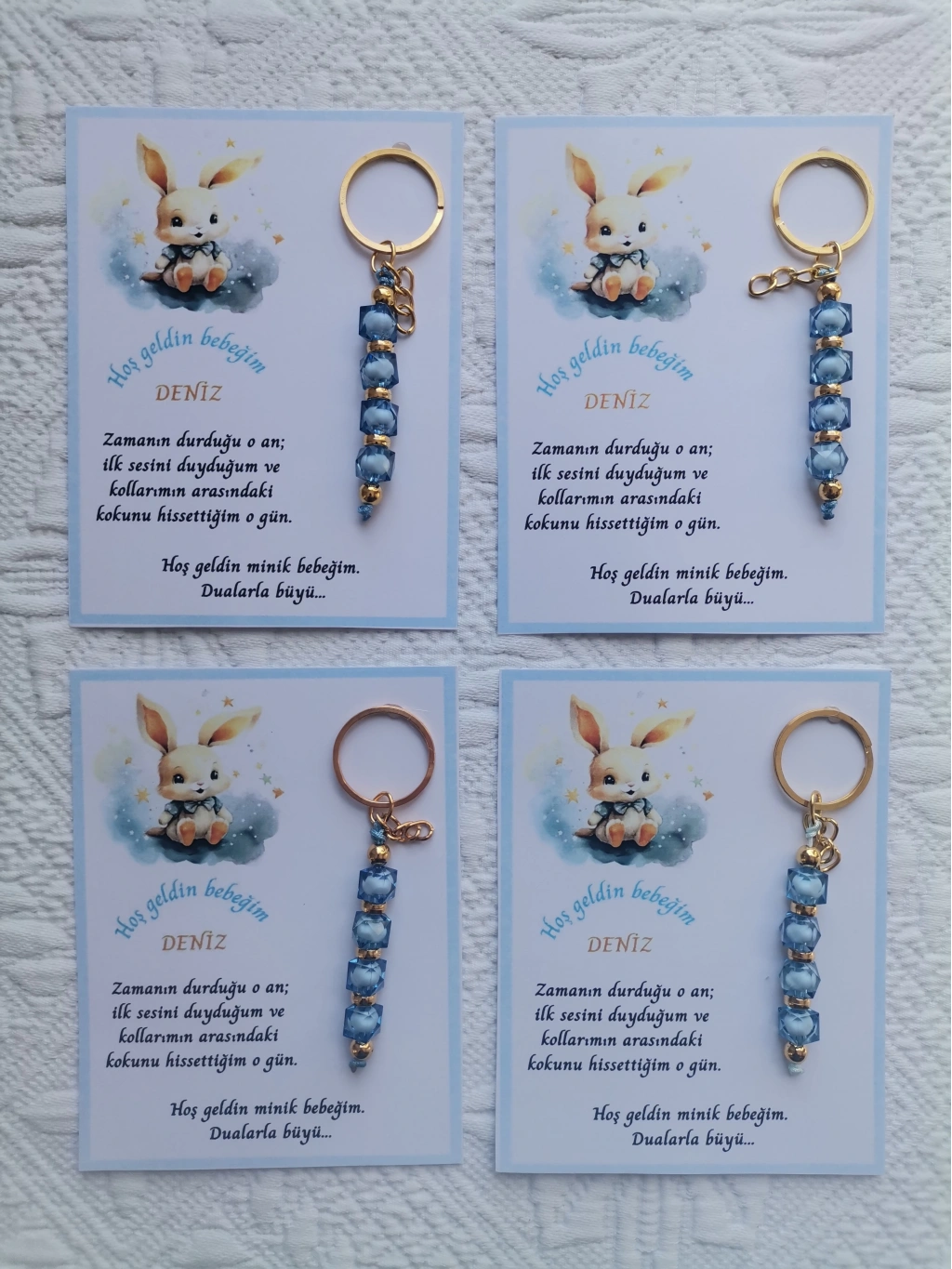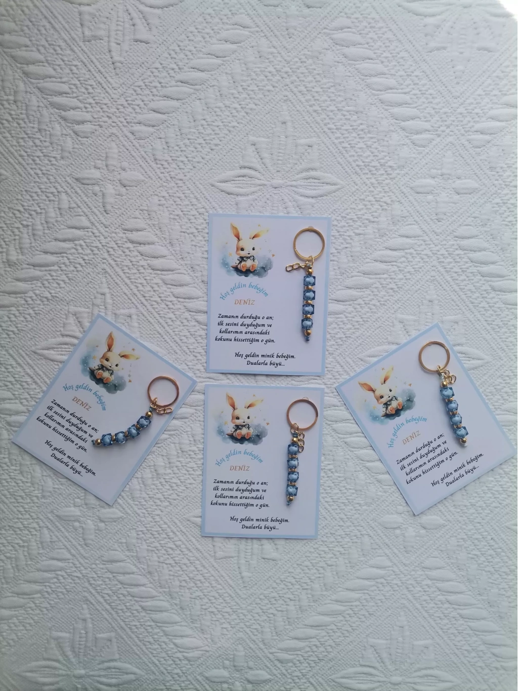 72 Adet İsme Özel Tasarım Mavi Anahtarlık Hastane Yeni Doğan 40 Mevlidi Dağıtmalık Hediyelik