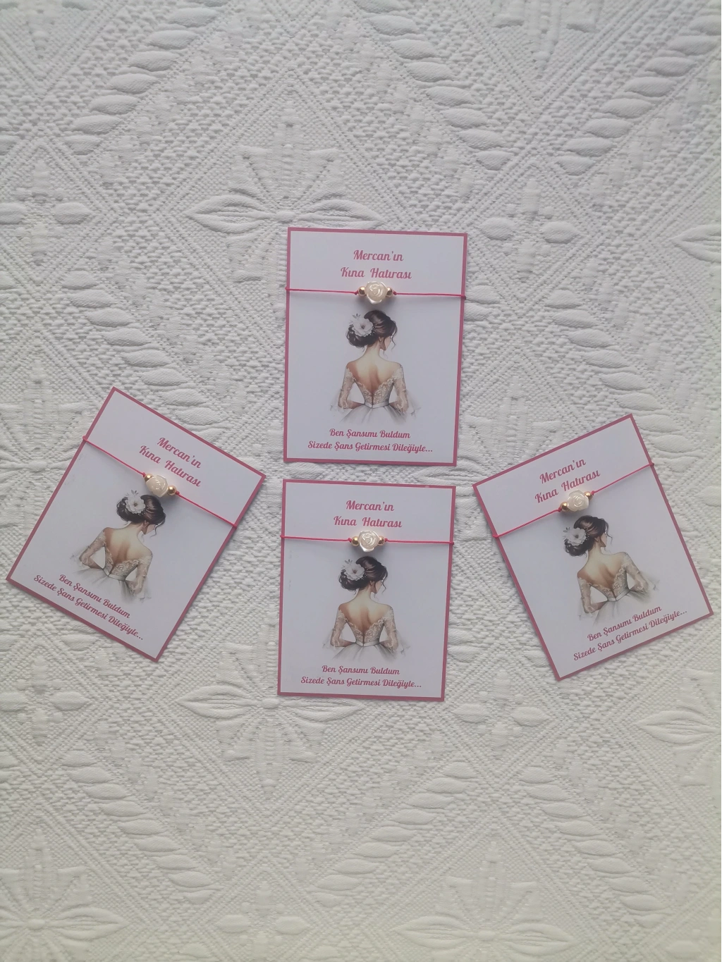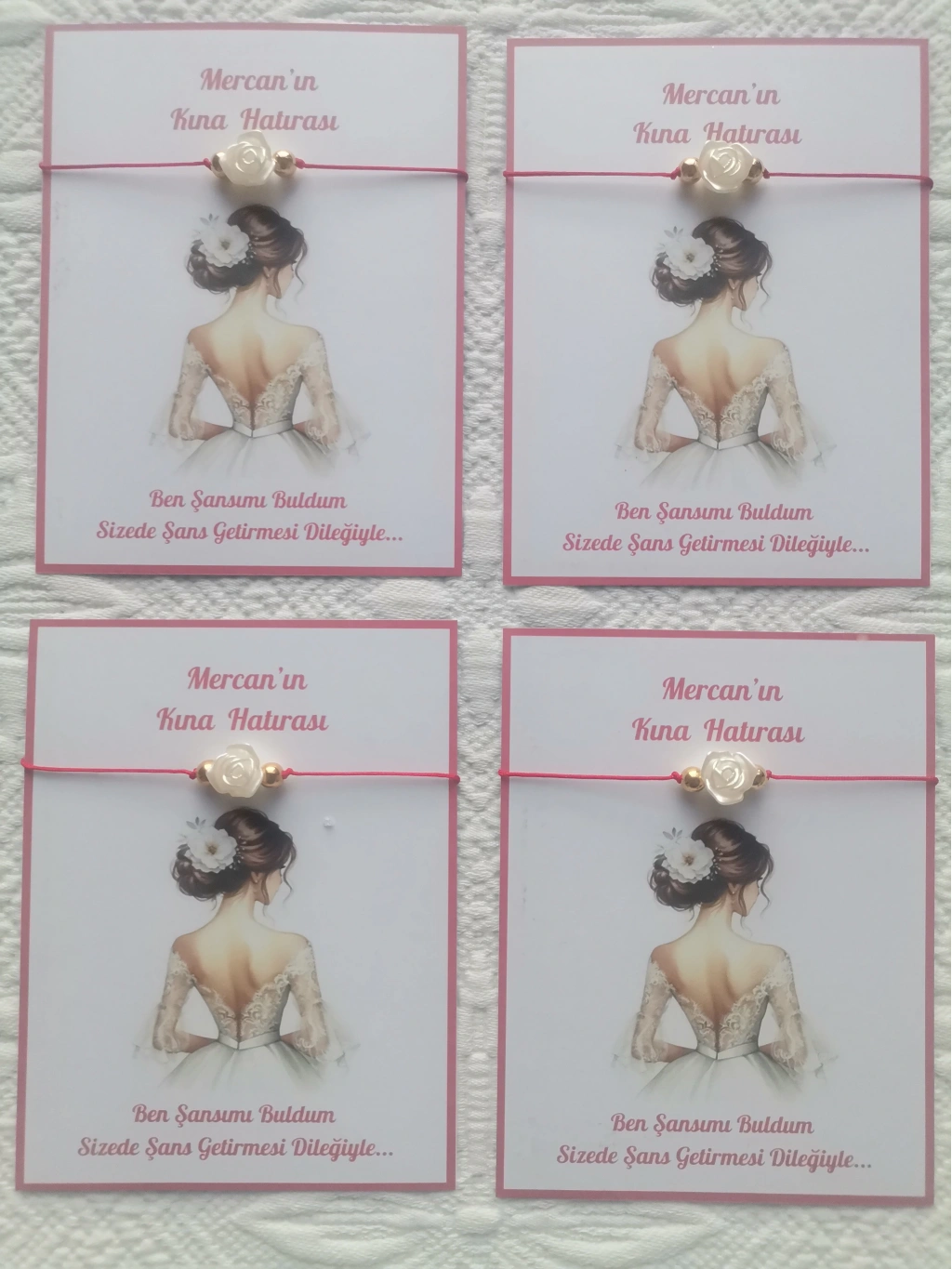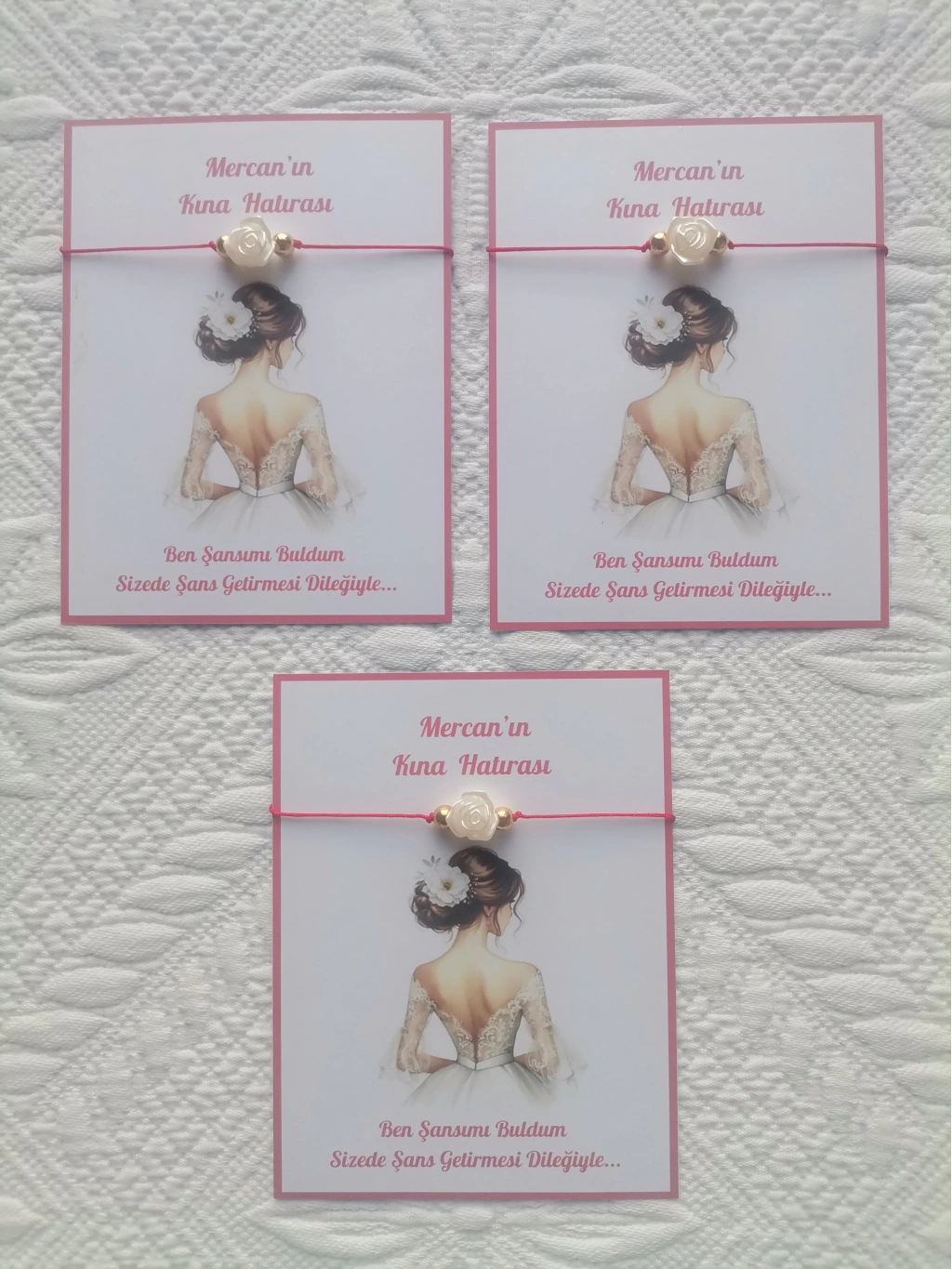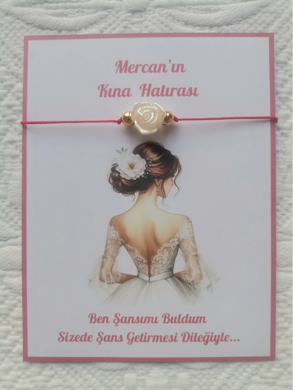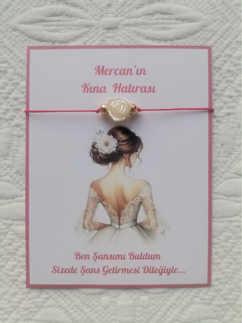 Kişiye Özel Gül İnci Model Düğün Nikah Nişan Söz Kına Hatırası Dağıtmalık Hediyelik Bileklik